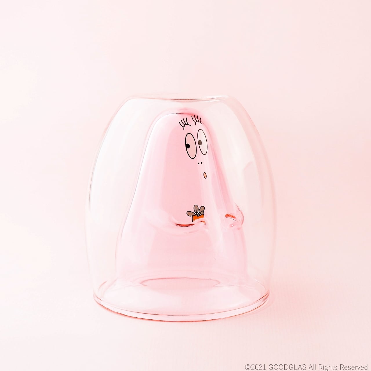 飲み物を注ぐと「バーバパパ」の顔がくっきり現れ、注ぐ飲み物によって雰囲気がかわる楽しいグラスです。