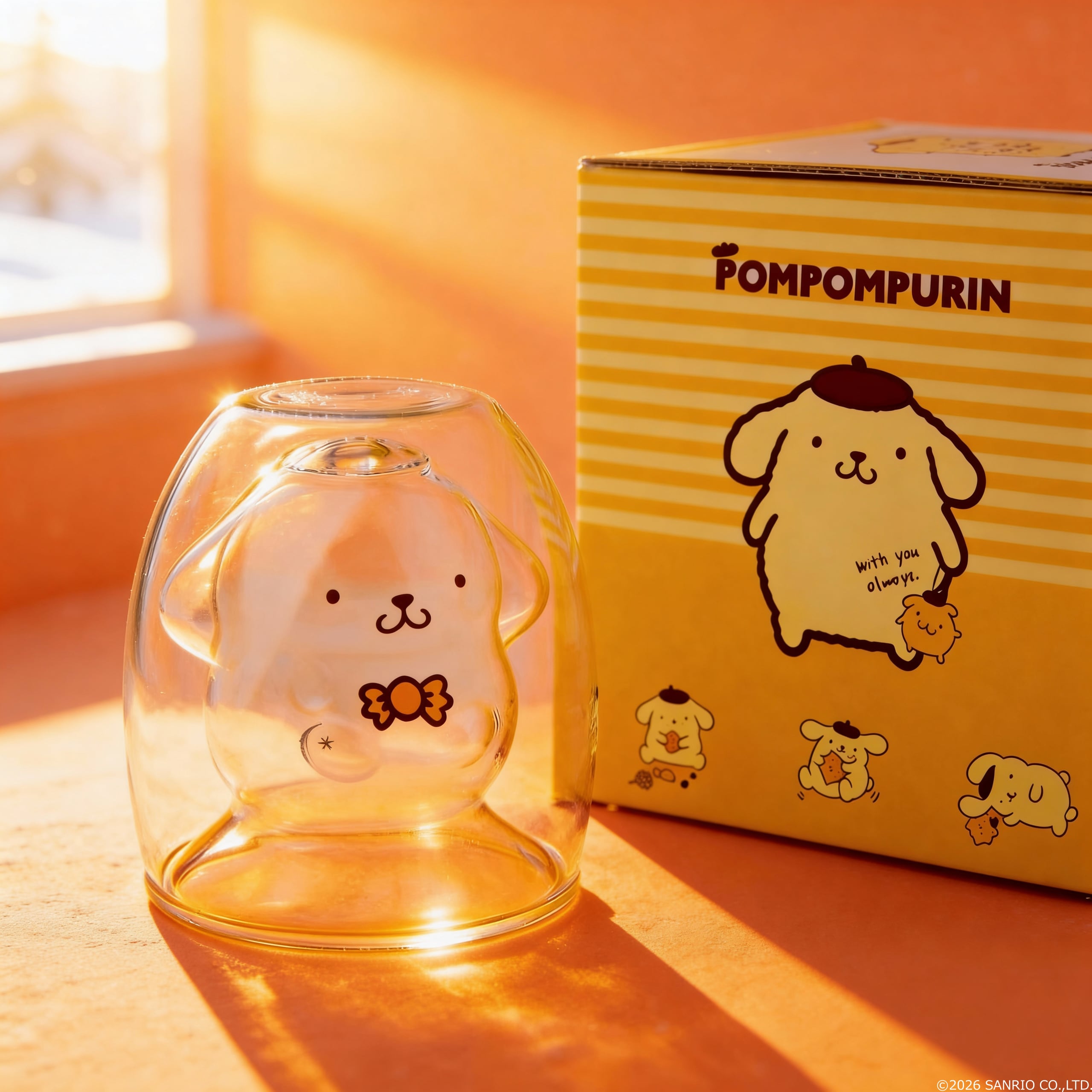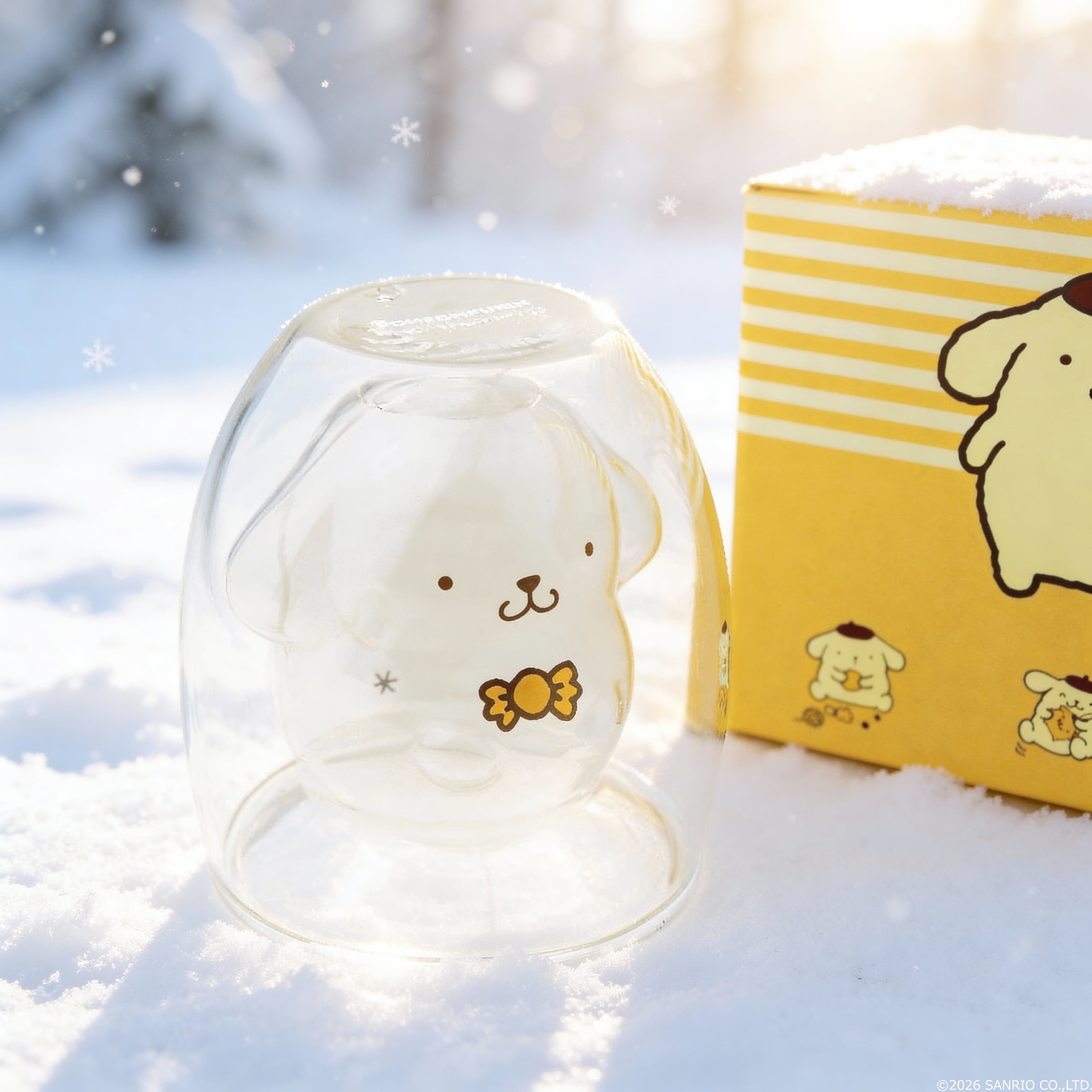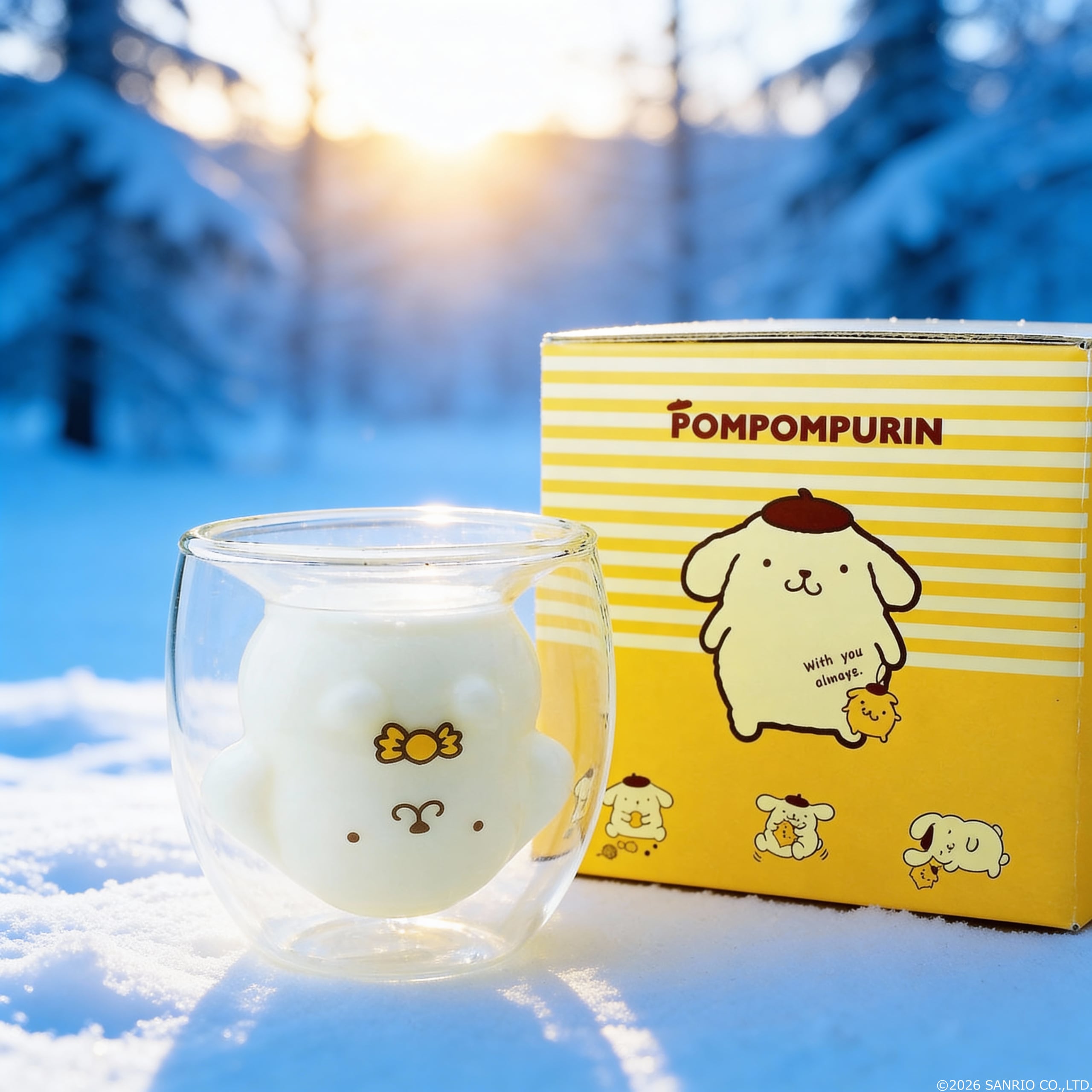 飲み物を注げば内側の層にデザインされた「ポムポムプリン」が浮かび上がって見えます。