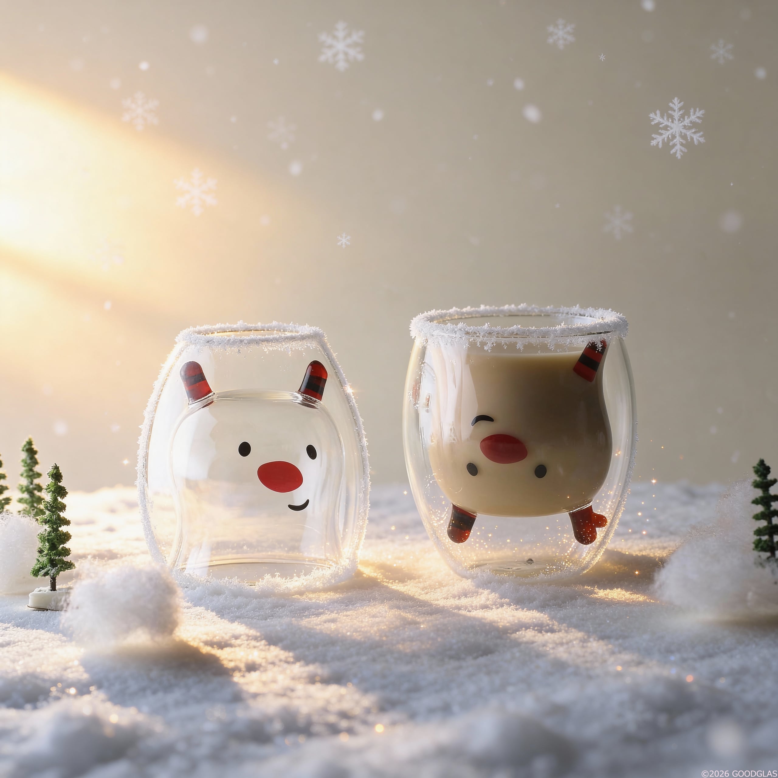 グラスは雪を模した小さな白い玉が入ったタイプと玉の入っていないタイプの2種類があります